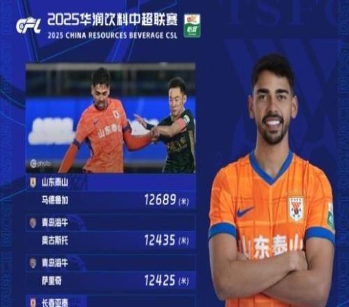中超第27轮跑动距离:马德鲁加第一 -